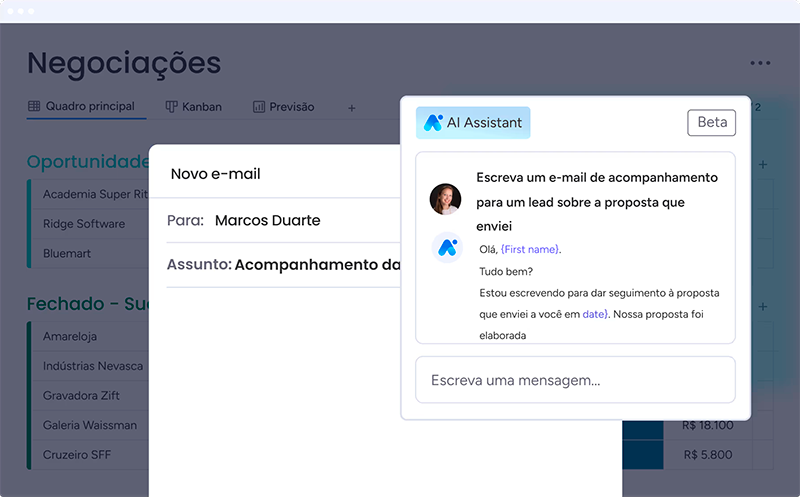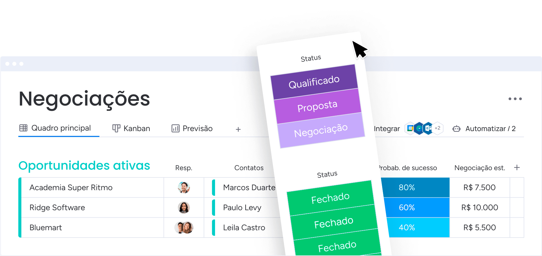 Em uma plataforma única, visual e fácil de usar. Ele permite personalizar fluxos de trabalho, automatizar tarefas e integrar ferramentas essenciais como e-mail e redes sociais, garantindo mais agilidade e controle para os times de vendas.